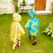 とてもカラフルな色使いのレインコート。