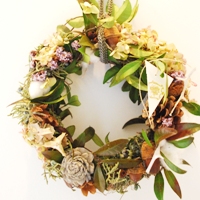 お昼ごろ、アトリエみちくさの井本さんご夫妻がオオロラ舎に来てくださいました。 今度のワークショップの打ち合わせを兼ねて、当日作るリースのサンプルを届けに来てくださったんです。 なんともシックで自然な植物のリース!デコラで人工的な装飾ではなくて、庭先からそのまま摘んできたような 佇まいのリースに、しばしうっとりしました。 このリースをベースにして、もう少し色を足したい方や色を抑えていきたい方など、 作り手の方の自由な感性で花材を追加しながら作品を仕上げていってもらおうと思っています。 なのできっと、参加される方それぞれが違う雰囲気のリースをお持ち帰りになるんだと思います! 今からわたしもとても楽しみです♪ 11月28日のご予約がだいぶ埋まってまいりましたので、ご検討中の方はお早めにご連絡くださいね。 (⇒11月28日のご予約は満員になりましたので受付終了いたしました。 11/18)