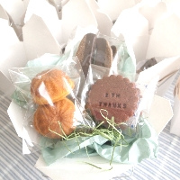 2周年イベントではカフェも営業しますが、通常メニューではなく 3月4日(日)限定のスペシャルメニュー、価格でのご提供となります。 :::::::::::::::::::::::::::::::::::::::::::::::::::::::::::::::::::::::::::::::::::::::::::::::::::::::::::::::::::: <FOOD> ・Pique-niquer のパン(お好きなものをイートインにて) ・デリプレート(フライドポテトとフレッシュサラダのプレート) ¥400- ・本日のスープ ¥250- <SWEETS> いいだ菓子店のカフェモカ・シフォンケーキ(通常の2/3サイズ) ¥300- <DRINK> ・コーヒー(HOT/ICE) ¥200- ・紅茶(HOT ダージリン・アールグレー・ワイルドベリー/ICE アールグレー) ¥200- ・100%ジュース(りんご/オレンジ) ¥200- :::::::::::::::::::::::::::::::::::::::::::::::::::::::::::::::::::::::::::::::::::::::::::::::::::::::::::::::::::: お買い物の合間に気軽に食べていただけるようなメニューにしましたので、 価格も2周年の感謝をこめた、当日のみのスペシャルプライスです! もちろんPique-niquerさんのパンも、たくさんご用意してお待ちしております。 パンはテイクアウトも可能ですのでお土産にもぜひどうぞ♪  そして、いいだ菓子店の焼き菓子BOXが本日届きました。 新作のマーマレード・マドレーヌ、紫芋のクッキー、チョコビスコッティの3種類が かわいいBOXに入って550円! 早く食べたいです^^