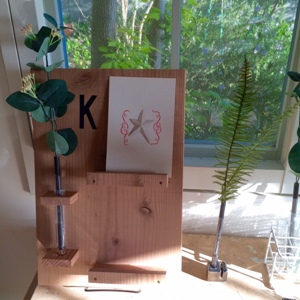 試験管の一輪挿しと、メモや手紙をおけるラック・鍵や帽子をかけるフック等を