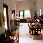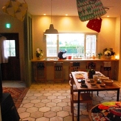 オープンするまでもオープンしてからも、休日らしい休日を過ごしていなかったのですが、 今週の定休日は久しぶりに家族で外出したり、のんびり過ごすことができました。 今2歳3ヶ月の息子は、ものすごいスピードで世の中のものを吸収し、毎日なにかしら 変化しつづけています。 長ズボンも、いつの間にか七分丈になっていてびっくりです。 そんな成長の瞬間をぼーっと見逃さないようにと、休日はとくに気合が入ります。 ビデオカメラも持ってるんですが、今のところ脳に焼き付けることがほとんど。 たぶん20年くらいしたら、後悔するのかもしれません。 でも、カメラを構える余裕がないほどに次々と“今”を楽しませてくれているんです。 だからなのかどうなのか、カメラで保存しているのはお店や庭の写真がほんとんど。 今回は少し、お店の様子をのせてみました。 将来カフェにするスペースも、今はこんな感じで雑貨を広げてやっています。 秋ごろには、うまく新展開できるかな?