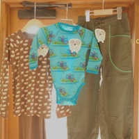 今回はパジャマとあったかそうなパンツ(ズボン)、ロンパースです。