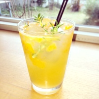 みかんがたくさん採れたので、今「みかんとローズマリーの生ソーダ」やってます。